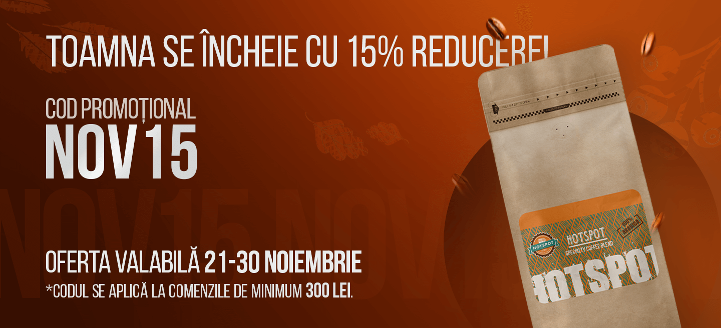 Introduce codul NOV15 în perioada 21–30 noiembrie și bucură-te de finalul de sezon alături de aroma preferată.